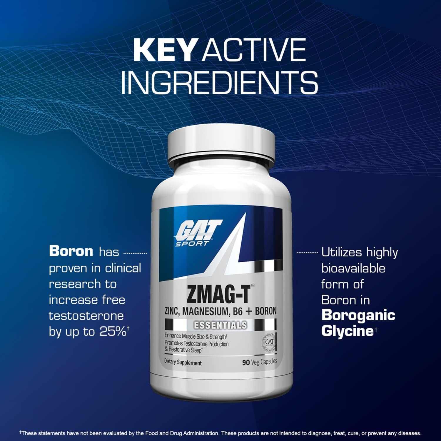 It's essential for all athletes to enhance muscle size and strength, promote testosterone (test) production, and have restorative sleep. GAT Sport ZMAG-T is a scientifically advanced vitamin and mineral-based nutraceutical designed to help assist with raising testosterone levels and muscle performance all while providing a better night’s sleep.